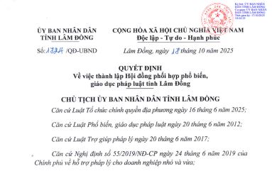 08:48 04/03/2026Vừa qua, Hội đồng phối hợp phổ biến, giáo dục pháp luật tỉnh Lâm Đồng ban hành Kế hoạch số 1174/KH-HĐPH ngày 26/01/2026, về triển khai công tác phổ biến, giáo dục pháp luật (PBGDPL), hòa giải ở cơ sở, xây dựng cấp xã đạt chuẩn tiếp cận pháp luật, hỗ trợ pháp lý cho doanh nghiệp nhỏ và vừa và trợ giúp pháp lý trên địa bàn tỉnh năm 2026.