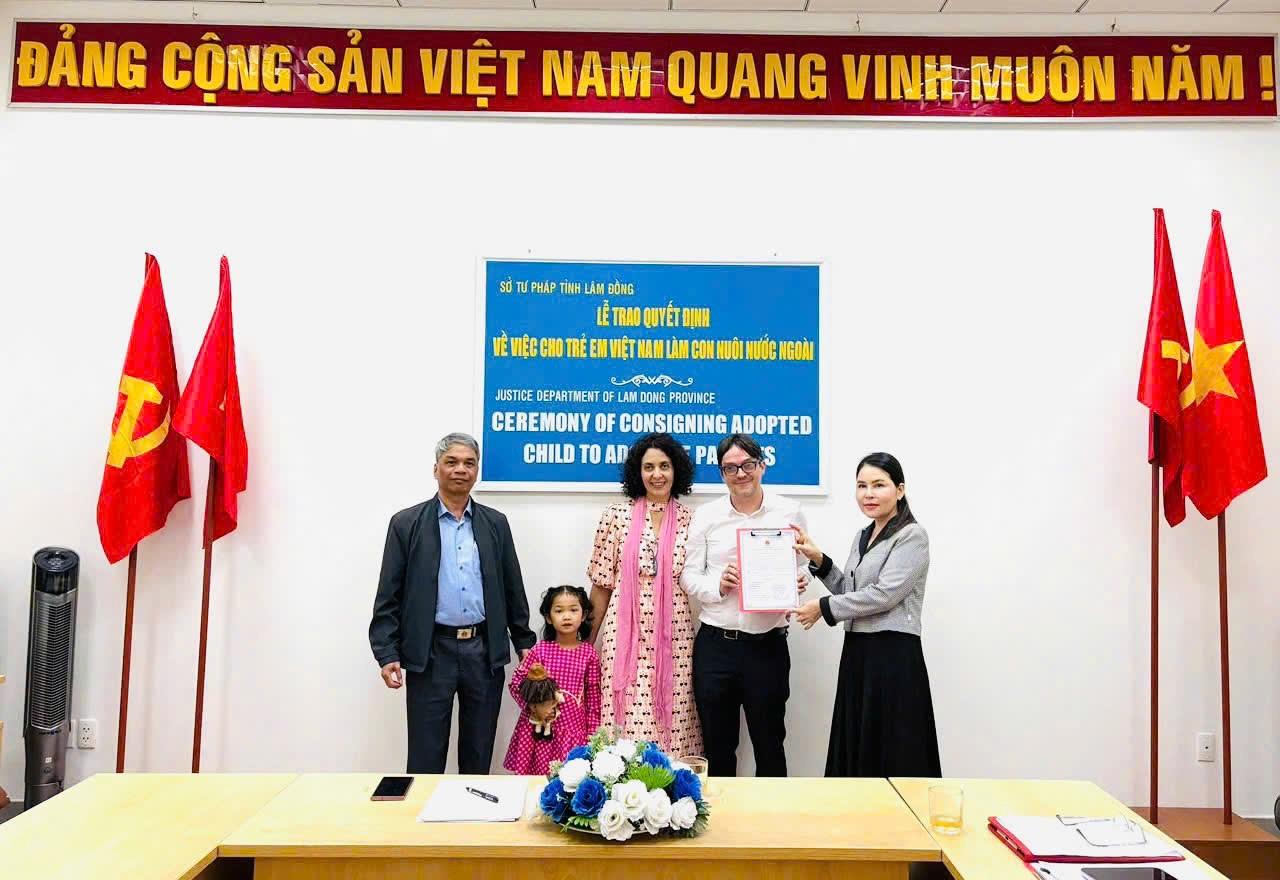 Hình ảnh Sở Tư pháp tỉnh Lâm Đồng tổ chức buổi lễ giao nhận con nuôi có yếu tố nước ngoài bảo đảm đúng quy định của pháp luật về nuôi con nuôi.