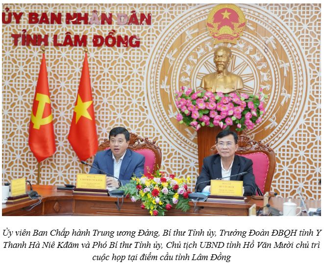 Tại điểm cầu tỉnh Lâm Đồng, các đồng chí: Y Thanh Hà Niê Kđăm, Ủy viên Ban Chấp hành Trung ương Đảng, Bí thư Tỉnh ủy, Trưởng Đoàn ĐBQH tỉnh; Hồ Văn Mười, Phó Bí thư Tỉnh ủy, Chủ tịch UBND tỉnh chủ trì Hội nghị. Cùng dự có lãnh đạo các sở, ngành.